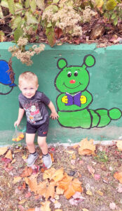 - A PARK FOR ALL AGES — Hunter Rosa visited the park last summer, taking part in a Storywalk event which entails reading large pages of a book that are spaced throughout the park. Rosa stopped to look at a caterpillar mural he found fascinating while on the walk. — Contributed