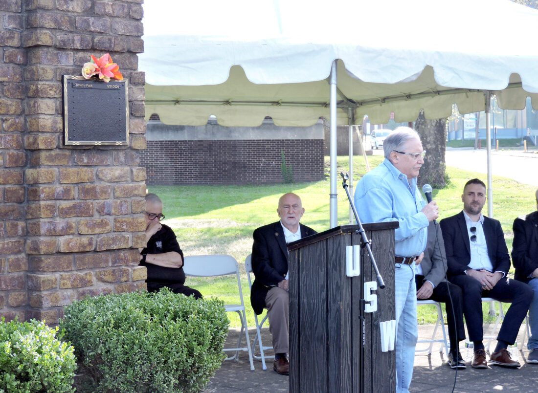 - PAYING TRIBUTE — USW Local 2911 President Mark Glyptis discussed the importance of safety in the workplace as part of Thursday’s memorial ceremony in Weirton. — Craig Howell