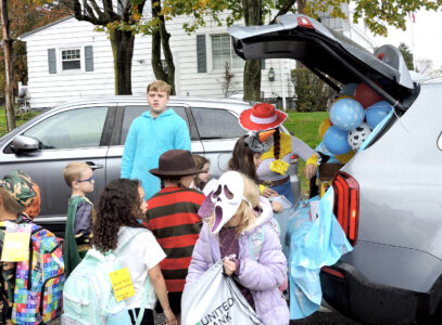 Elementary school pupils assigned to the bus stop at the Marland Heights fire station in Weirton were treated to some extra Halloween fun Thursday afternoon. Crossing guard Sheila Long, working with the youths’ parents and with support from United Bank, organized a trunk-or-treat to greet them as they got off the bus. Eight cars were decorated for the event, with other parents distributing from a bowl, offering each child a selection of candy, chips and other goodies. This was the fourth year for the trunk-or-treat. Long also works with parents to plan an activity for the Christmas season, complete with a visit from Santa Claus. — Craig Howell