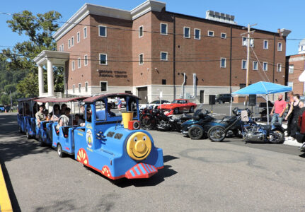 - TAKING A RIDE — Many families attending the Wellsburg Applefest this weekend enjoyed a train ride around the city’s downtown area. There also were bounce houses, pony rides, a petting zoo, car show and an opportunity for youth to operate their own booths in addition to the many vendors selling assorted food and other merchandise. — Warren Scott