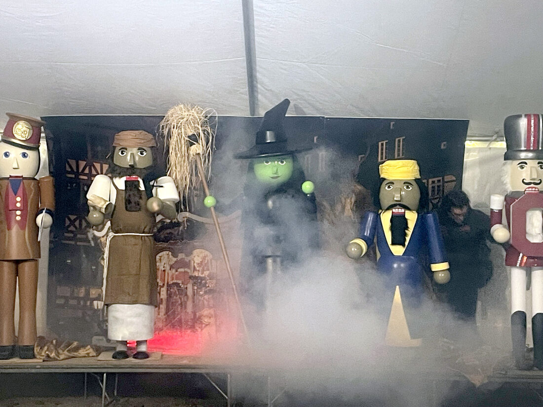 ADDED TO ROSTER — Five new nutcrackers were added to the Nutcracker Village Tuesday evening, as crowds gathered inside a tent erected inside the German Gluhwein Garden on Fouth Street. A fog machine began the introduction, after which officials announced the newest additions, including an Ohio State Buckeye nutcracker, Zaccheus, St. John the Worker, Fred Astaire and the Wicked Witch. There are now 230 nutcrackers, according to officials. -- Julie Stenger