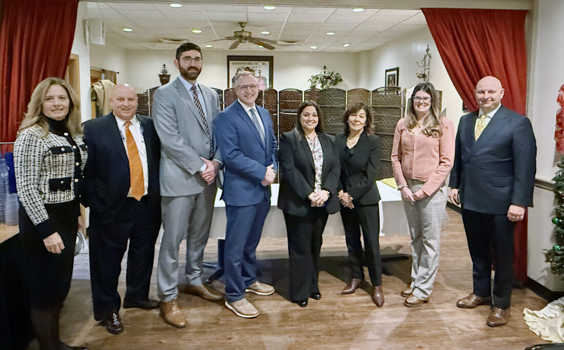 Members of the Jefferson County Bar Association gathered at Scaffidi’s Restaurant and Tavern Friday to install new officers and executive committee members for 2025-2026. Jefferson County Common Pleas Judge Michelle Miller, left, administered the oath to Melvin O’Brien, executive committee; Joseph Rine, secretary; Aaron A. Richardson, second vice president; Maresa B. Taylor, treasurer; Emanuela Agresta, president; Sara A. Gasser, first vice president; and Adam Martello, executive committee. Michelle Gorman is a member of the executive committee. — Linda Harris