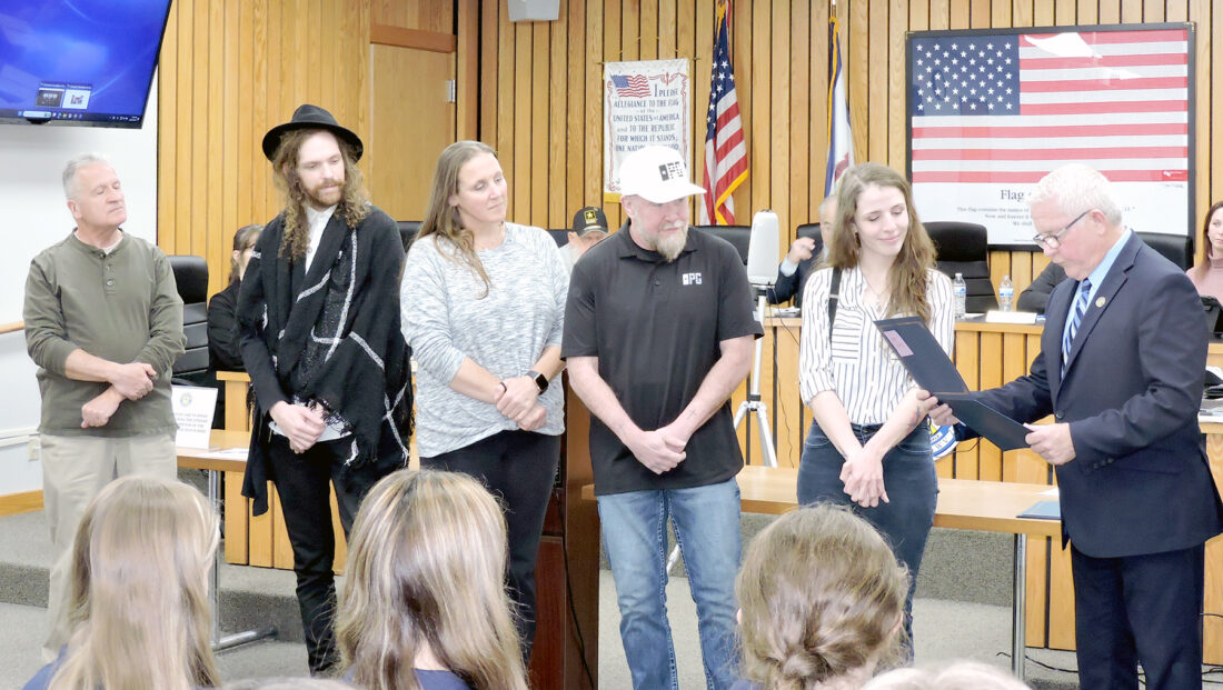Members of the Weirton Trash Squad were honored during the Nov. 10 meeting of Weirton City Council. The recognition came in observance of Extra Mile Day, which honored those who take additional efforts to make their community a better place. Among those presented with proclamations by Mayor Dean Harris were, Mallory Hout, Ty Looman, Eric Maher, Jamie Fenske and Hollie Babik, who have been dedicating their time to travel through the city’s roadways and picking up garbage. — Craig Howell