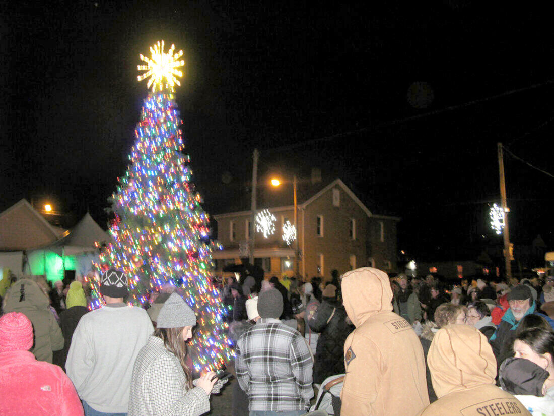 A BIG NIGHT — Many turned out last year for the lighting of a Christmas tree at the corner of North Fourth and Clark streets during the first Christmas light-up festival held by Inspire Toronto. The event will return on Nov. 29 with the Toronto Christmas Art Festival held by the Focus in Toronto group. -- Warren Scott