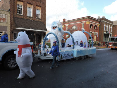 While the temperature didn’t dip to freezing levels, parade-watchers were treated to a a surprise “snowfall” emanating from a snow-maker aboard the wintry float carrying the Abominable Snowman and sponsored by the village of Beech Bottom.