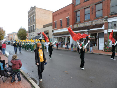 SOUNDS OF THE SEASON — Many were entertained by the Brooke High School marching band as it made its way down Charles Street during the Wellsburg Christmas parade held Saturday by the Brooke County Area Chamber of Commerce. -- Warren Scott