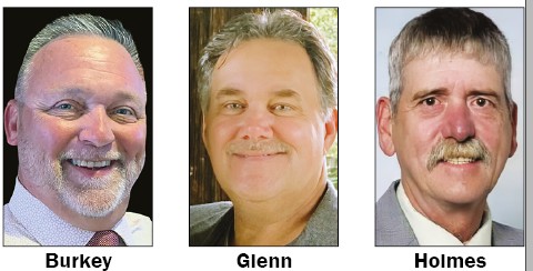 The three were Michael Burkey, who received 541 votes, or 35.9 percent; Larry Glenn, who received 475 votes, or 31.52 percent; and Ron Holmes, who received 474 votes, or 31.45 percent.