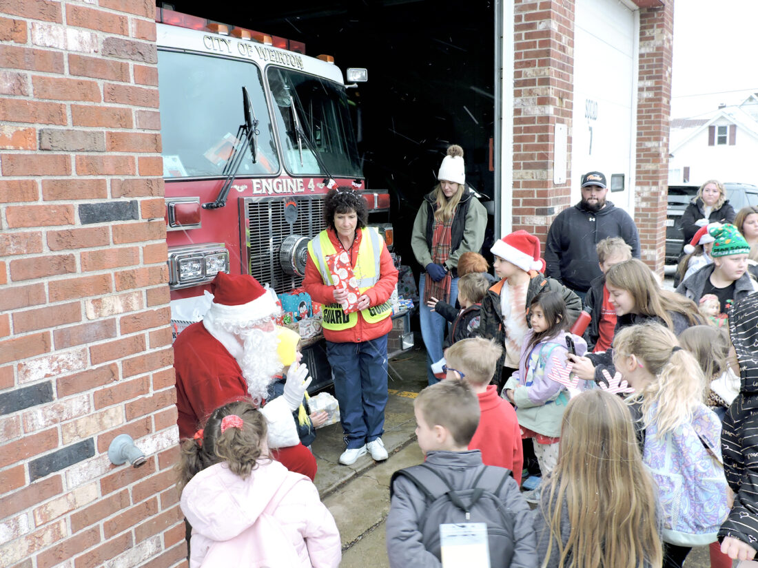 Continuing a holiday tradition, Weirton crossing guard Sheila Long, on the final day before Christmas break Friday, worked with parents to treat the youth of her bus stop at the Marland Heights Fire Station with some Christmas surprises, including a visit from Santa Claus. Each child received a gift, along with some pizza and other refreshments. The effort receives additional support each year from United Bank and other donors. — Craig Howell