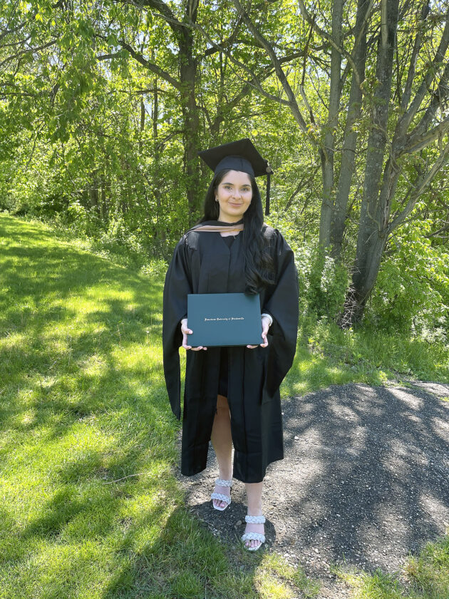She obtained a bachelor of science in accounting, cum laude, in May 2024, and a master of business administration in May.