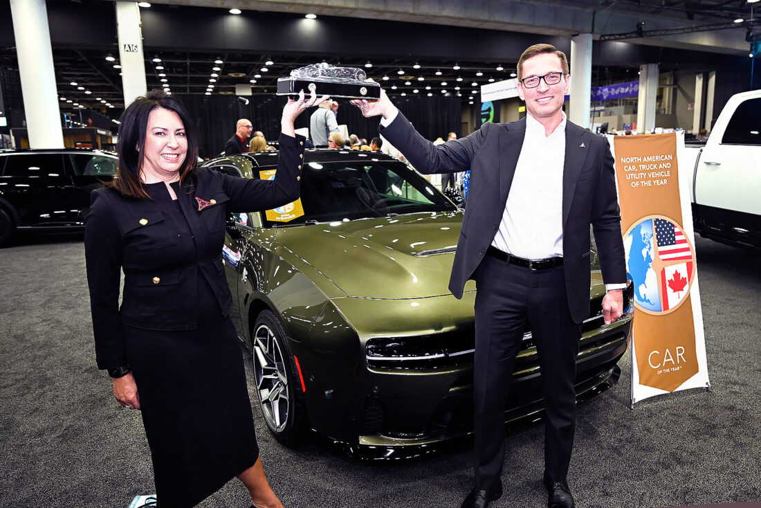 - Stellantis Vice President North America Sedan Programs’ Audrey Moore, left, and Dodge Brand Chief Executive Officer Stellantis North America Matt McAlear hold up the Car of The Year Award in front of the Dodge Charger, Wednesday, Jan. 14, 2026, in Detroit. (AP Photo/Jose Juarez)