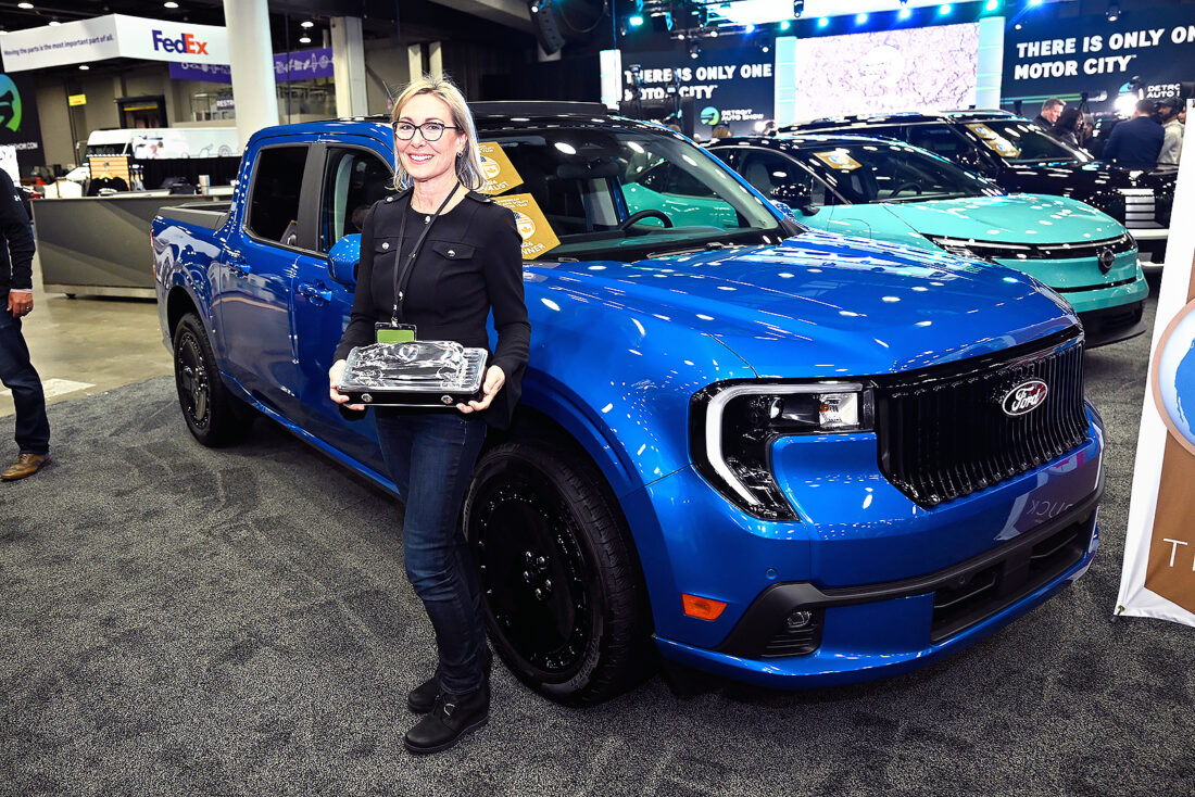 - Ford Motor Company Vehicle Programs Director Pamela Wylie holds the North American Truck of the Year award in front of the Ford Maverick Lobo, Wednesday, Jan. 14, 2026, in Detroit. (AP Photo/Jose Juarez)