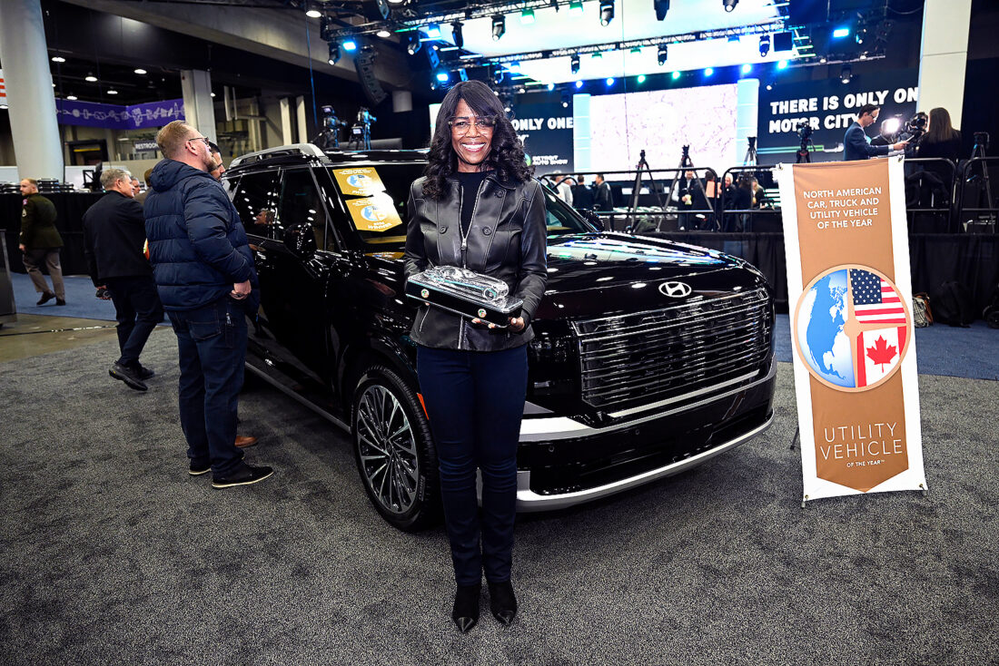 - Hyundai Motor North America Senior Vice President for Product Planning and Mobility Strategy Olabisi Boyle holds the North American Utility Vehicle of the Year award in front of the Hyundai Palisade, Wednesday, Jan. 14, 2026, in Detroit. (AP Photo/Jose Juarez)