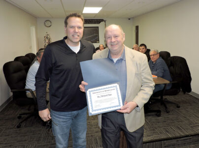 SPECIAL RECOGNITION — On Monday, Follansbee Council and Mayor Scott McMahon, left, recognized Dr. Michael Pipo for his many years of service, both as a dentist and in the military, and for his donation of his office, following his retirement, for use by Follansbee American Legion Post 45. -- Warren Scott