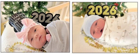 WVU Medicine Weirton Medical Center welcomed its first two babies of 2026 Friday, with the birth of Amaria, left, daughter of Kaylee Yeater and Bryan Barr of Follansbee at 12:56 a.m., followed half an hour later by the arrival of Eli, son of Jeremy and Madison Whitney of Bloomingdale. The Ohio Valley’s official New Year’s baby, Beekon Ray Meade, was born at WVU Medicine Wheeling Hospital on Thursday, the son of Brooke and Phillip Meade of Woodsfield.