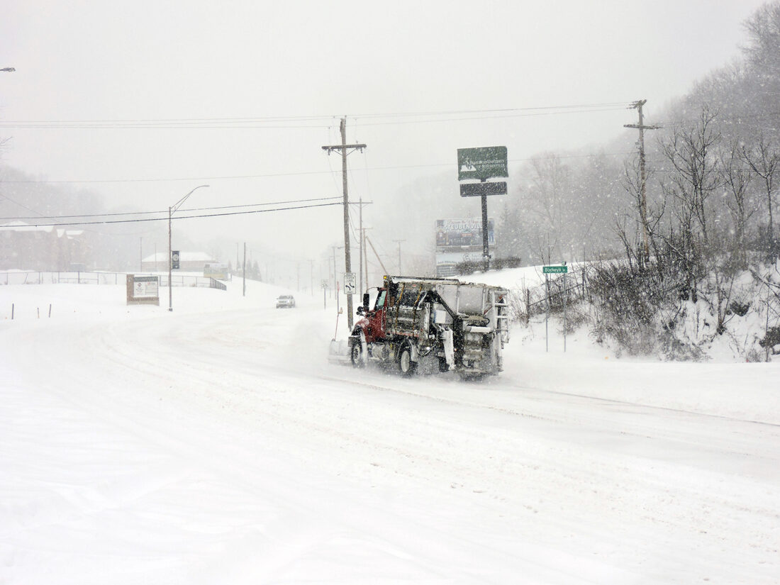 - CLEARING ROADS — A plow truck made its way up University Boulevard in Steubenville as snow continued to fall Sunday afternoon as part of a massive winter storm that blanketed the Northeastern United States. — Warren Scott