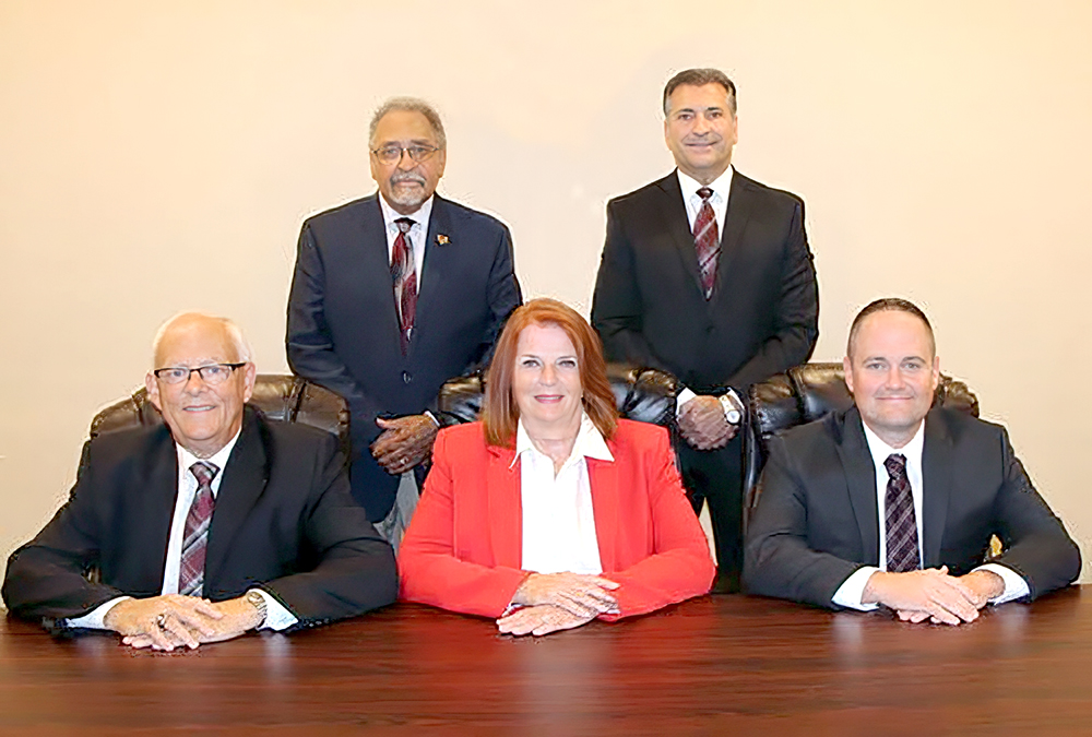 The Steubenville Board of Education named its leaders for 2026 with William Hendricks and Matt Davis serving as board president and vice president. The school board held its organizational and regular meetings on Jan. 14 to approve operational and other matters. The board includes, from left, front, Tom Timmons, Ruth Anne Bruzzese and Davis; and back, Hendricks and Greg Agresta. — Contributed