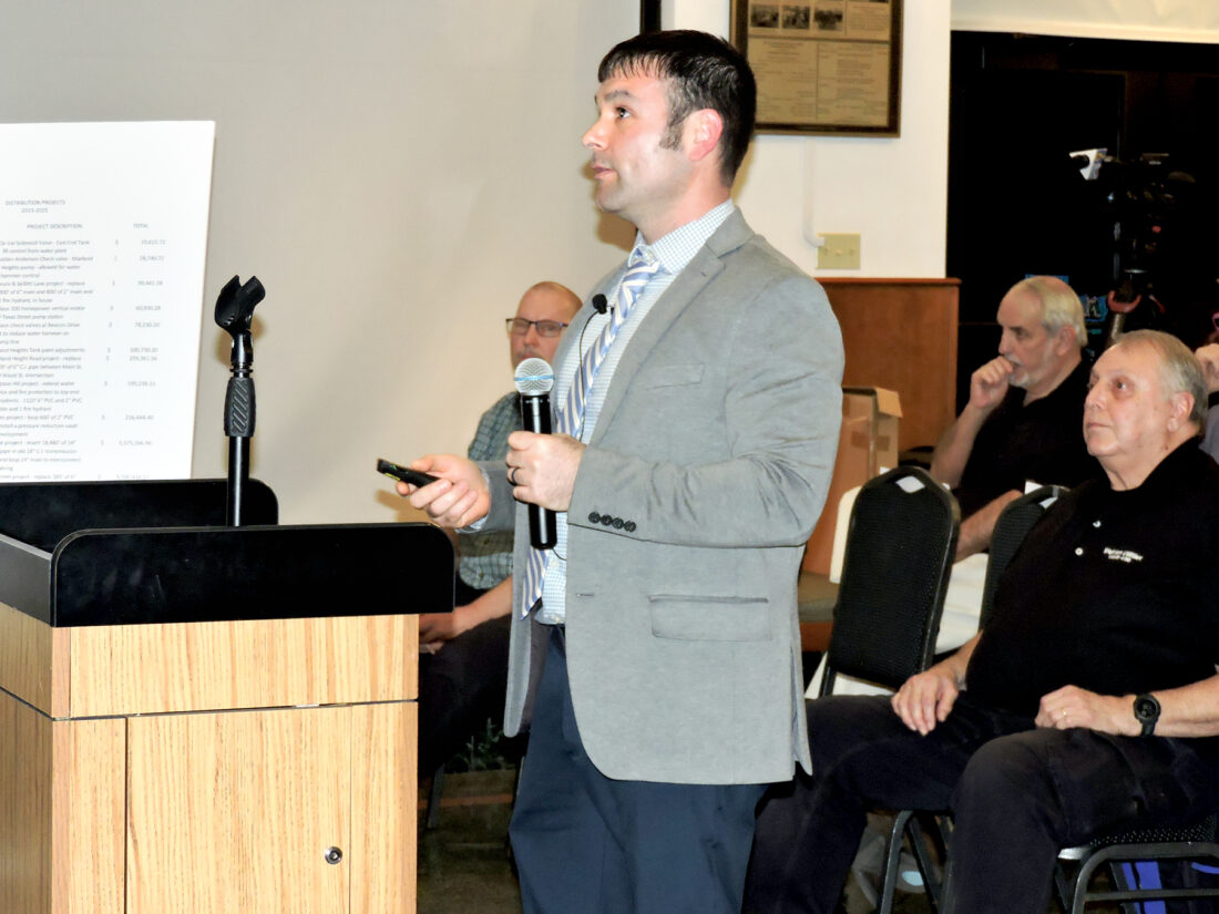 DESCRIBING PROJECT — Jesse Alden, project manager from the Thrasher Group, addressed Weirton Council during a presentation of the scope of the planned water distribution replacement project following Monday’s council meeting. -- Craig Howell