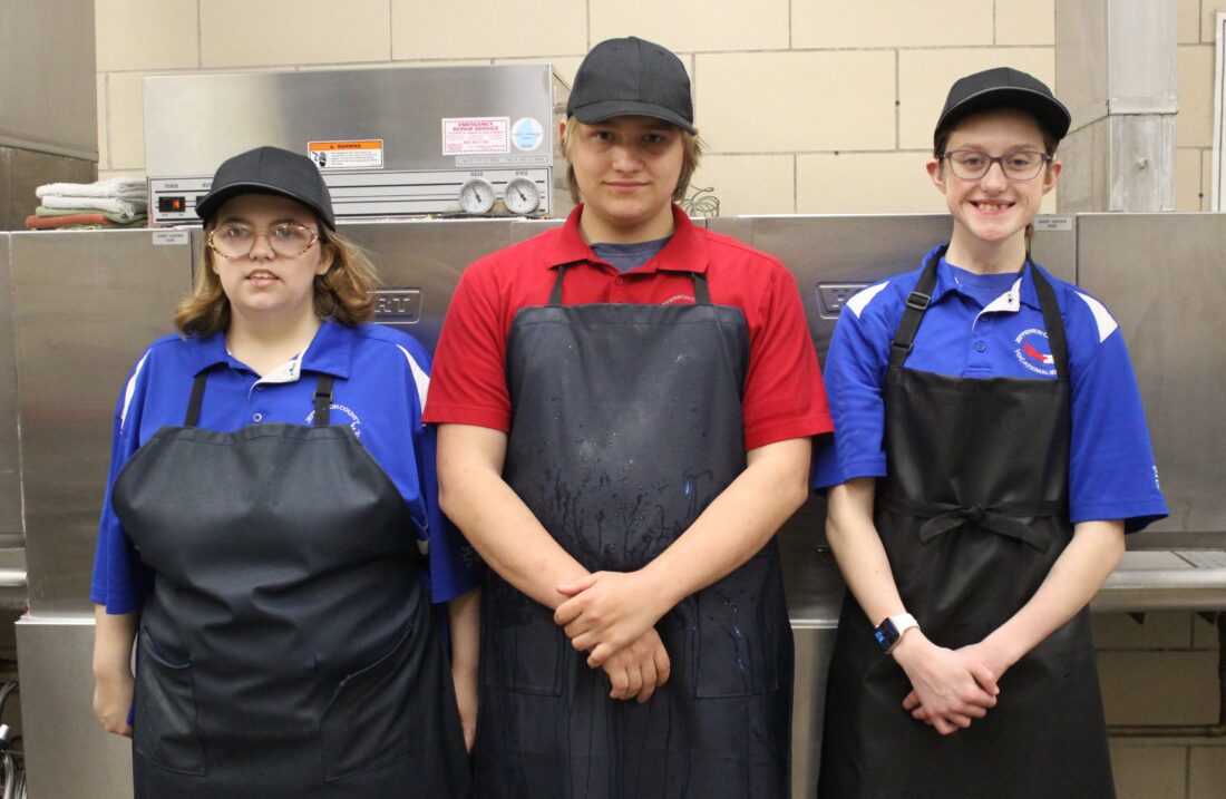 Photo provided Transition To Work students, pictured from left, Katie Anderson, Tim Miller and Hannah Hendrix are gaining on-the-job experience as they work in the dish room at Jefferson County Joint Vocational School. The seniors began in March and will continue through the end of the school year as they gain work-based learning hours and lab credit for the program.