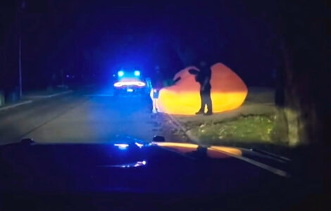PARMA HEIGHTS, Ohio (AP) — The subject of an Ohio police pursuit took off down the road, a flash of orange in the darkness, but officers eventually caught up and grabbed the escapee: a runaway inflatable pumpkin as tall as them.