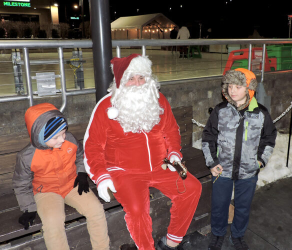 Everett Pence, 8, of Steubenville, left, and his 11-year-old brother, Emory, were among children who visited Santa Claus and took to The Rink at Franciscan Square during an open house hosted Monday evening by Franciscan University of Steubenville for members of the Jefferson County Chamber of ...