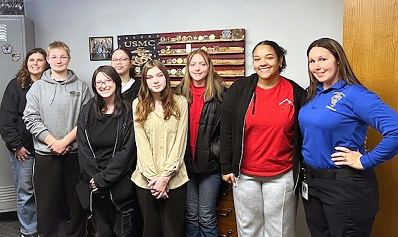Students enrolled in the criminal justice program at the Jefferson County Vocational School visited the St. Clairsville Post of the Ohio State Highway Patrol Jan. 21. The students were able to view operations at the dispatching center. Taking part in the educational trip were, from left, front, ...