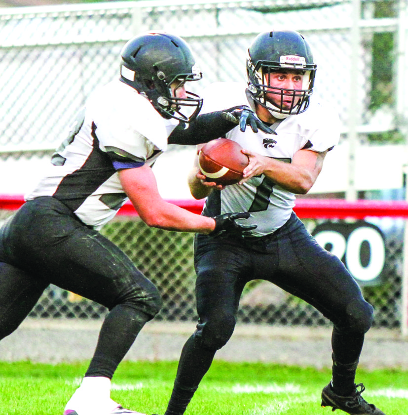 HANDING OFF — Edison’s Kenny Cranston hands off to Seth Cade against Beaver Local on Friday (photo by Wayne Maris).