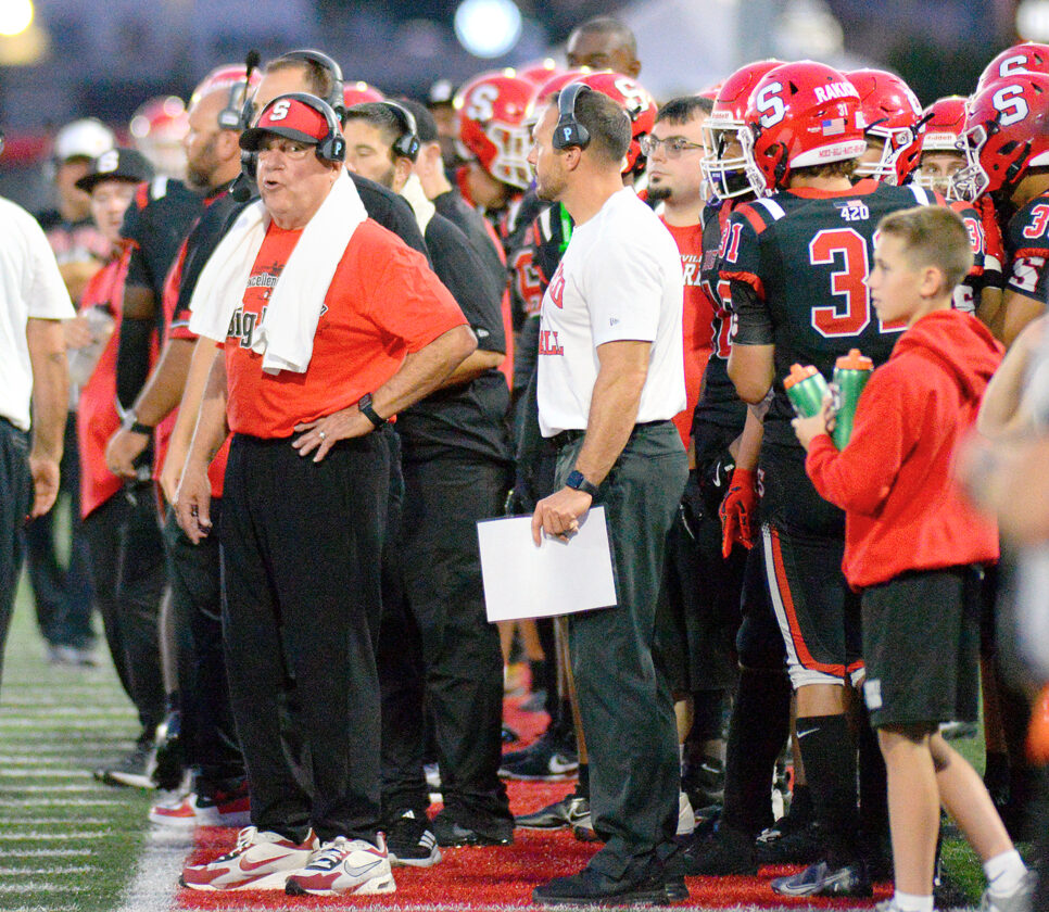 BACK AT HOME — Coach Reno Saccoccia and the Big Red football team are back at home the rest of the regular season, starting Friday. - Andrew Grimm
