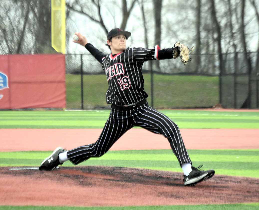 Blazier, just a sophomore, was forced into action in the top of the first when classmate Brody Groome injured his right hand after colliding with Weir’s Teddy Glyptis and tumbling to the artificial surface after making an outstanding catch on a foul pop up.