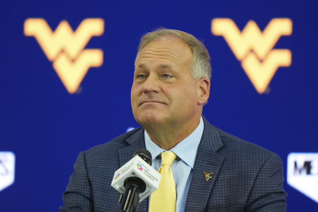 FILE - West Virginia head coach Rich Rodriguez listens to a question during the Big 12 NCAA college football media day in Frisco, Texas, Wednesday, July 9, 2025. (AP Photo/LM Otero, File)