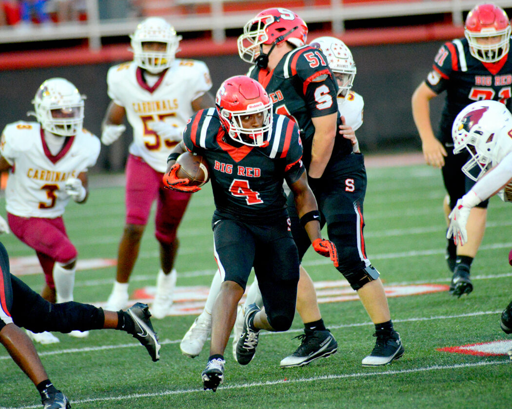 Quarterback Santino Haney plunged forward to move the sticks, and on the next play, Ca’Juan Bryant found a hole and went 9 yards to score, powering across the goal line to lift Big Red to its first victory and send a packed crowd into a frenzy.