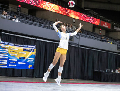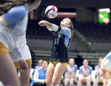 - SETTING — Oak Glen’s Keira Vick sets during Wednesday’s state tournament. – WVSSAC