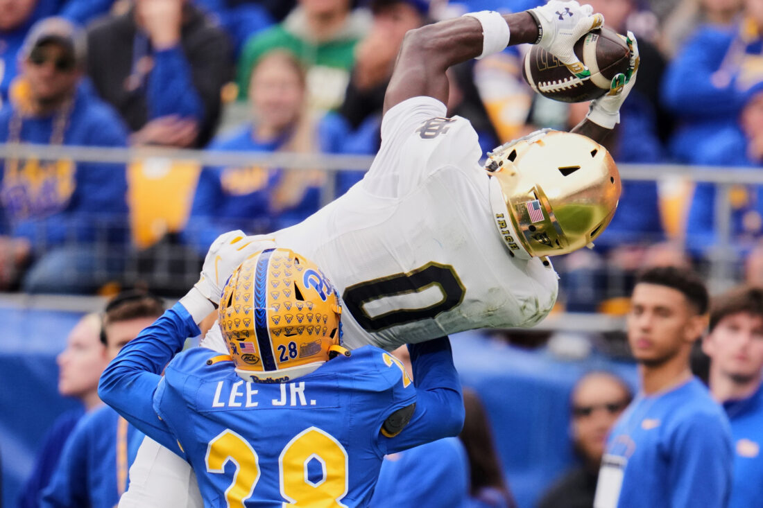 Pitt: The Panthers still have a shot at reaching the ACC title game if they can beat No. 14 Georgia Tech and No. 16 Miami to end the regular season. Still, they were decidedly outclassed by the Irish, who outgained the Panthers 387-219 and pushed them around on a day Pitt retired the No. 97 jersey of former defensive lineman and likely future Pro Football Hall of Famer Aaron Donald.