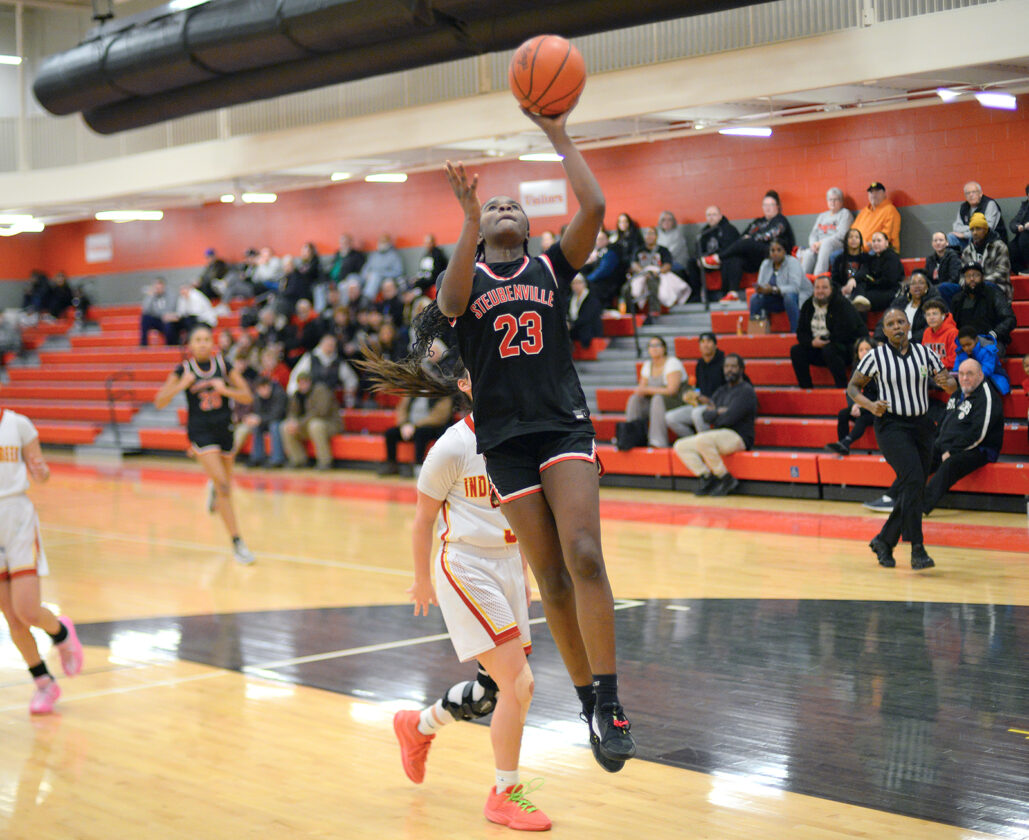 - LAYUP — Big Red’s Nylah McShan puts up a layup against Indian Creek on Monday night. – Andrew Grimm