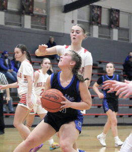 - IN THE PAINT — Big Red’s Nylah McShan puts up a shot in the paint against University on Thursday night inside the Crimson Center. – Andrew Grimm