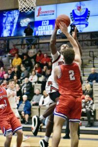 Behind the red-hot shooting of Josh Huffman and Kolten Whitmire – the senior duo combined for all but 12 of their team’s points – the Patriots outscored Big Red 34-32 in the second half, but the damage had already been done. Huffman finished with a game-best 29, which included four treys, while Whitmire added 17 on five triples – three coming in the third quarter.