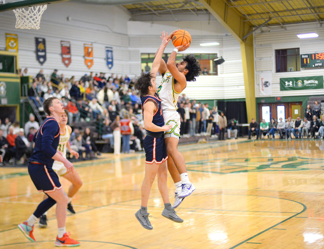- Franciscan’s Anthony Covetta puts up a layup on Saturday. – Andrew Grimm