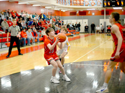 - TO THE HOOP — Toronto’s Colt Joynson puts up a layup past defense from Indian Creek’s Nishon White during Wednesday’s game. – Andrew Grimm