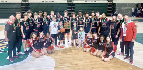 REGIONAL CHAMPIONS — The Big Red boys basketball team together after winning the Division III, Region 11 Championship on Saturday at Ohio University. - Andrew Grimm