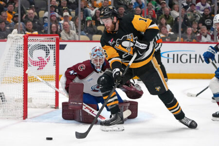 The only fireworks this time around were provided by the Avalanche. MacKinnon set the tone early, stealing the puck from Penguins defenseman Parker Wotherspoon and then racing in alone on Silovs before flicking a shot over the goaltender’s glove to give Colorado the lead 4:57 into the first.
