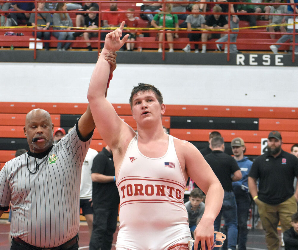 Toronto’s Heath Thomas (285) won his first district title after finishing as an alternate last season. He earned a 4-0 nod over Newcomerstown’s Martin Hernandez. Thomas is now 42-3 and is the Red Knights first district champion in nearly four decades, according to sources.