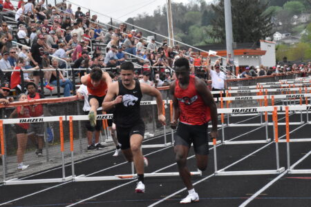 Big Red won seven events to pile up 100 points as Ziare Scurry set two individual records and anchored a relay team to another. The junior broke the 200-meter record of 21.7 seconds set in 1998 by Linsly’s Eddie Drummond when he timed out in 21.67. He also broke his own 400-meter mark of 49.45 set last year when he finished in 48.77. He also ran the final leg on the 4×200 that clocked out in 1:30.49, breaking the old mark of 1:31.66 set by a Steubenville team that season that included Scurry and Colton Henderson. This year’s foursome consisted of Terahji Thompson, Henderson, Josiah Rea and Scurry.
