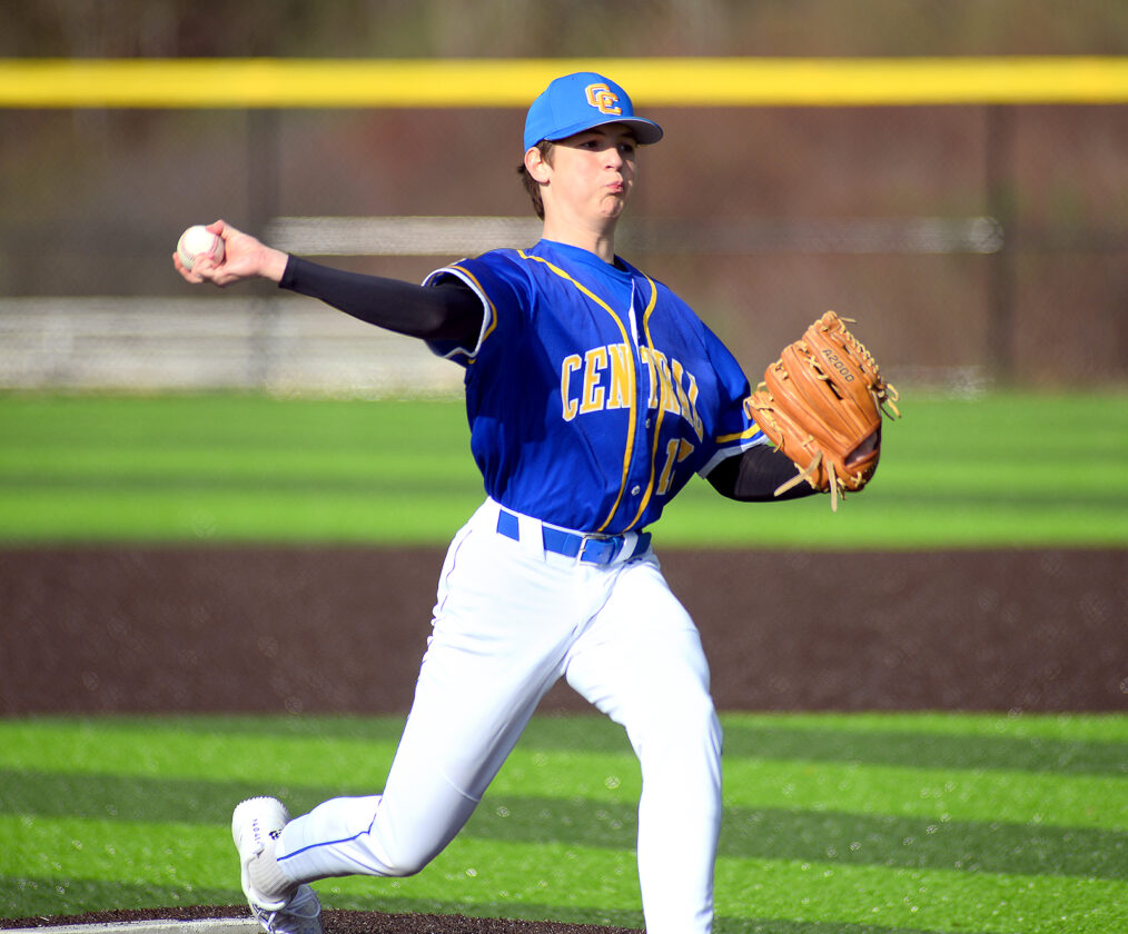 Photo by Andrew Grimm Central's Jospeh Vranish fires a pitch.